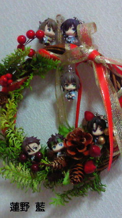 先日完成させたクリスマスリースに薄桜鬼の皆(局長、ちー様は除きます)を乗せました(約一名、ぶらさがってます/笑)。